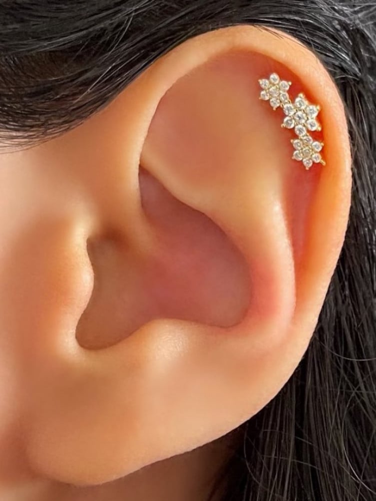 حلق ذهبي (فردة) من الفضة عيار 925 مطلي بثلاث طبقات من الذهب عيار 18