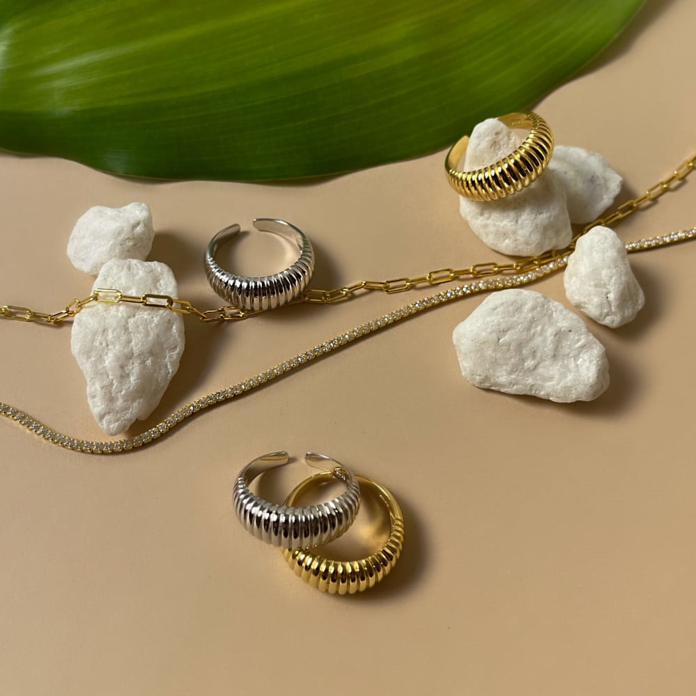 خاتم من الفضة عيار 925 مطلي بالذهب (فري سايز)