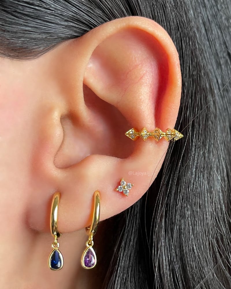 من الفضه عيار 925 مطلي بثلاث طبقات من الذهب عيار 18 بحجر ازرق